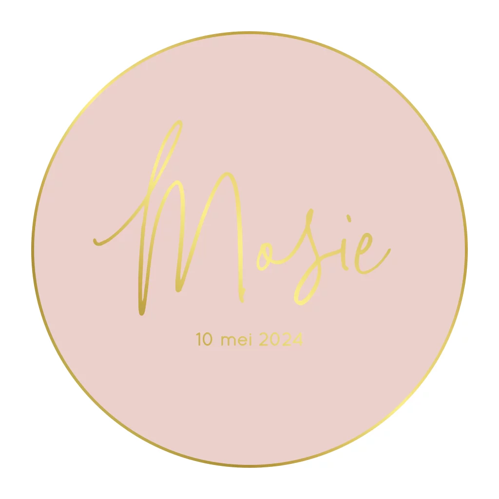 Minimalistisch geboortekaartje in originele ronde vorm en goudfolie. Je kunt het kaartje gemakkelijk aanpassen in de editor. Kies bijvoorbeeld voor een ander lettertype of achtergrondkleur.