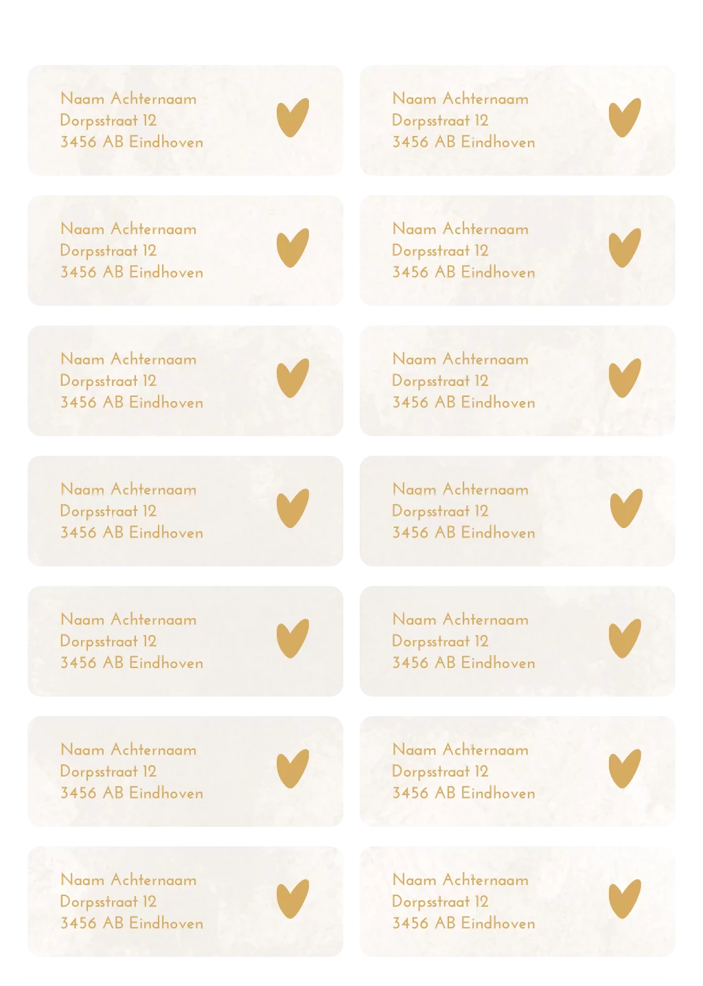 Adressticker beige geveegde achtergrond en goudgeel hartje