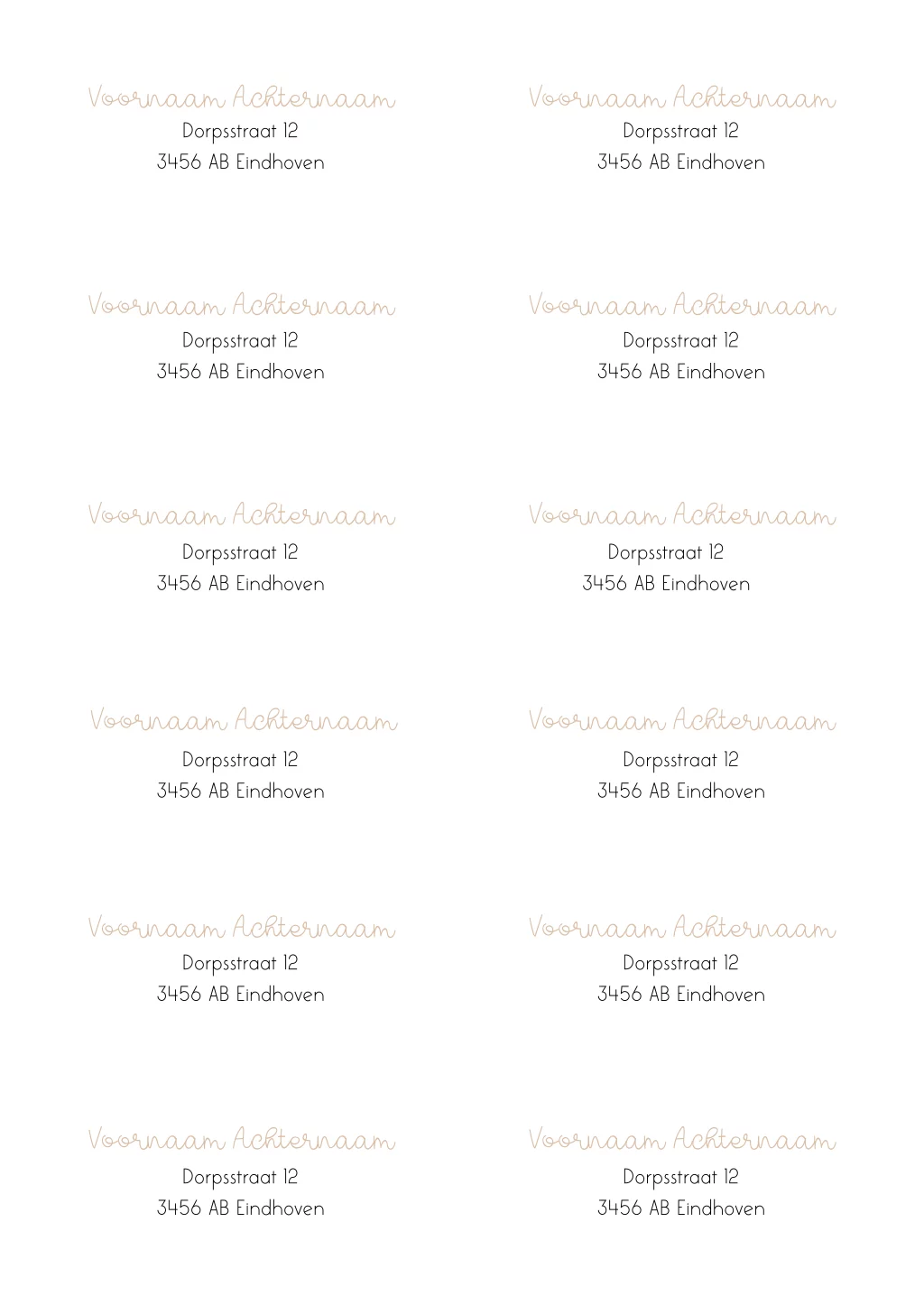 Deze sierlijke adresstickers in blush roze zijn de perfecte aanvulling op jullie geboortekaartjes! Ze zijn verkrijgbaar in dezelfde stijl en kleuren als de kaartjes, waardoor alles mooi op elkaar aansluit. Bestel de stickers samen met je enveloppen, zodat je alles van tevoren kunt regelen en direct aan de slag kunt als de kleine er is!