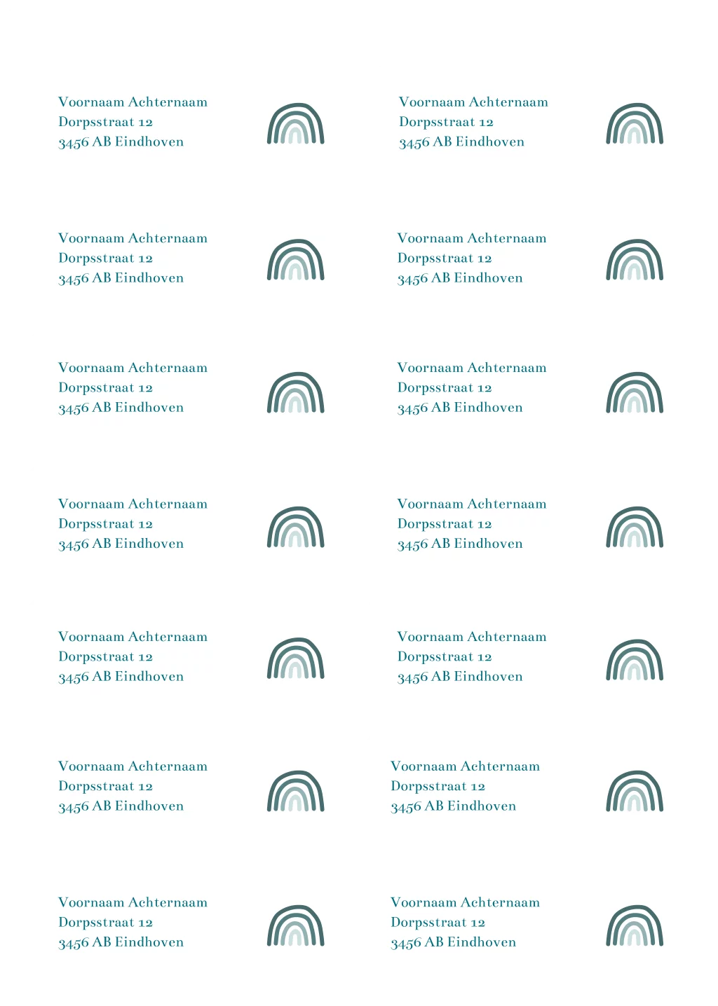 Deze stijlvolle adresstickers met een schattig ontwerp zijn perfect voor een moderne en elegante uitstraling. De combinatie van de blauwe en turquoise regenboog met de neutrale achtergrond zorgt voor een tijdloze en chique look. Stel de stickers met de adressen van je gasten en maak van je geboortepost een waar feestje