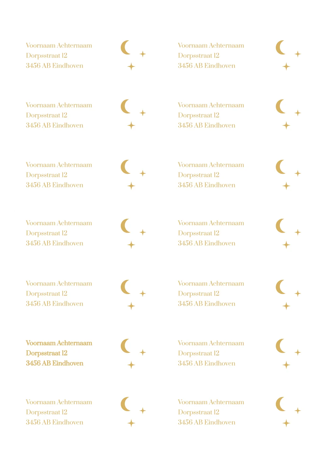 Adressen goud geel maan en sterretjes