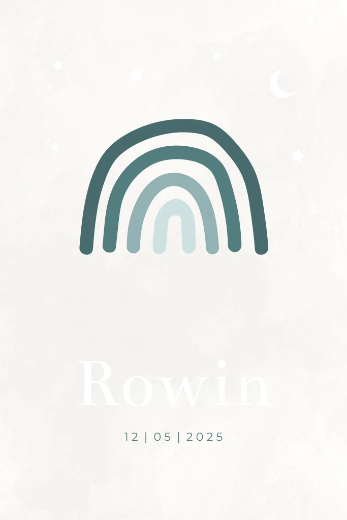 Dit prachtige geboortekaartje met blauwtint regenboog en goudfolie sterren en maan is perfect voor de aankondiging van de geboorte van jullie kleine jongen. De combinatie van de blauwe regenboog, de sprankelende goudfolie accenten en de schattige sterren zorgen voor een lief en trendy ontwerp. Dit geboortekaartje is ideaal voor ouders die op zoek zijn naar een stijlvol en origineel kaartje dat de komst van hun zoon op een bijzondere manier aankondigt. De toevoeging van de regenboog, maantje en sterren zorgen voor een speels en lieflijk tintje, terwijl de foliedruk en watercolor achtergrond zorgen voor een trendy uitstraling.