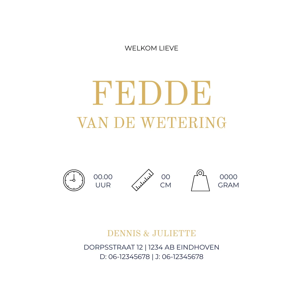Groen geboortekaartje voor een jongen met goudfolie spetters. Liever voor een meisje? De kleuren en het lettertype pas je gemakkelijk zelf aan. Hulp nodig bij je ontwerp? Let me know, ik help je graag!