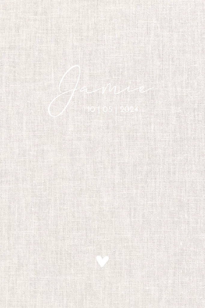 Lief geboortekaartje met linnenlook achtergrond en goudfolie hartje. Het kaartje komt het beste tot zijn recht wanneer je deze op linnen papier laat afdrukken.