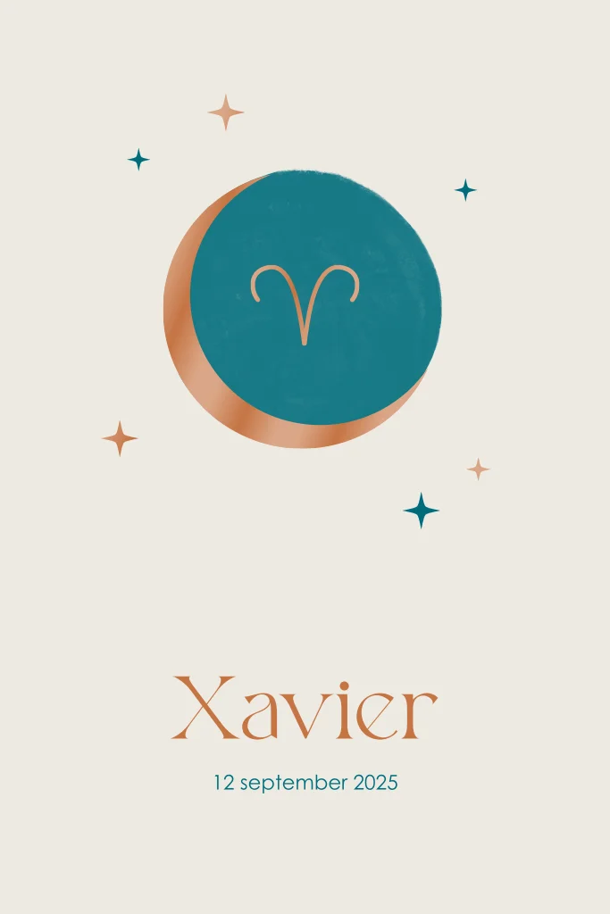Geboortekaartje maan sterrenbeeld turquoise koperkleur hoogglans