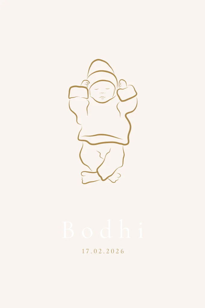 Lief geboortekaartje met handgetekende lijntekening van een klein babytje - made by Puulie. Ook mogelijk met een custom made lijntekening, voor meer informatie over de mogelijkheden en kosten kun je contact opnemen via info@yaydays.nl