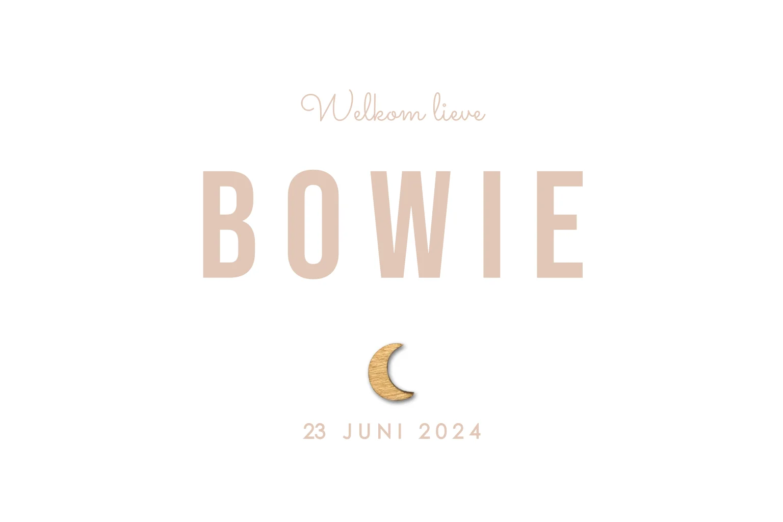 Uniek geboortekaartje voor een meisje met een écht houten maantje.