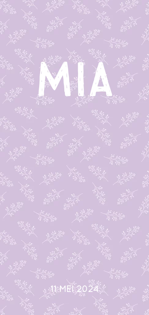 Ontdek dit lieve geboortekaartje voor een meisje met een zachte lila achtergrond, een delicaat takjespatroon en een schitterende roségoudfolie naam. Het elegante ontwerp straalt warmte en zachtheid uit, perfect voor het aankondigen van jullie kleintje. Maak het compleet met leuke extra’s zoals bijpassende sluitstickers en enveloppen voor een stijlvolle en persoonlijke geboorteset.