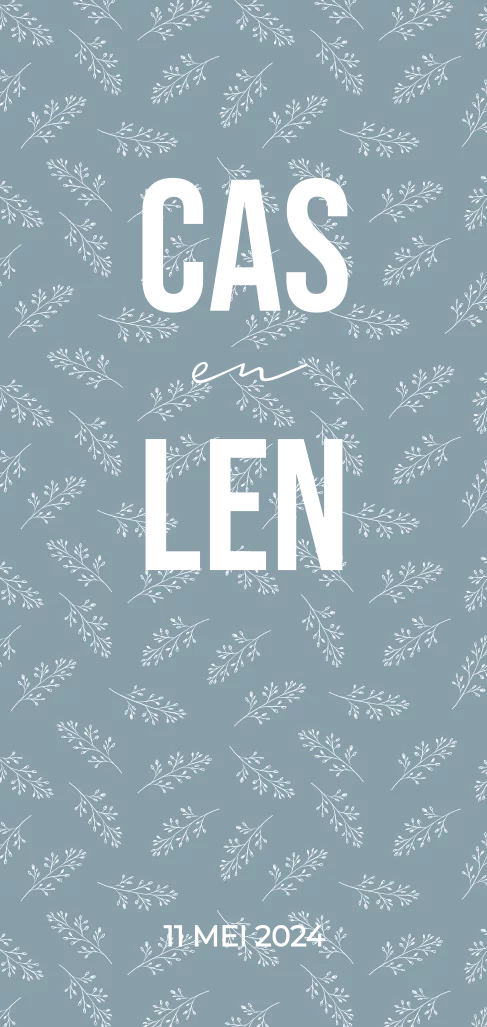 Lief geboortekaartje voor een tweeling met licht blauwe achtergrond, takjes patroon en goudfolie. Je kunt de kaart gemakkelijk aanpassen naar je eigen smaak door het kiezen van een andere achtergrond kleur of folie.