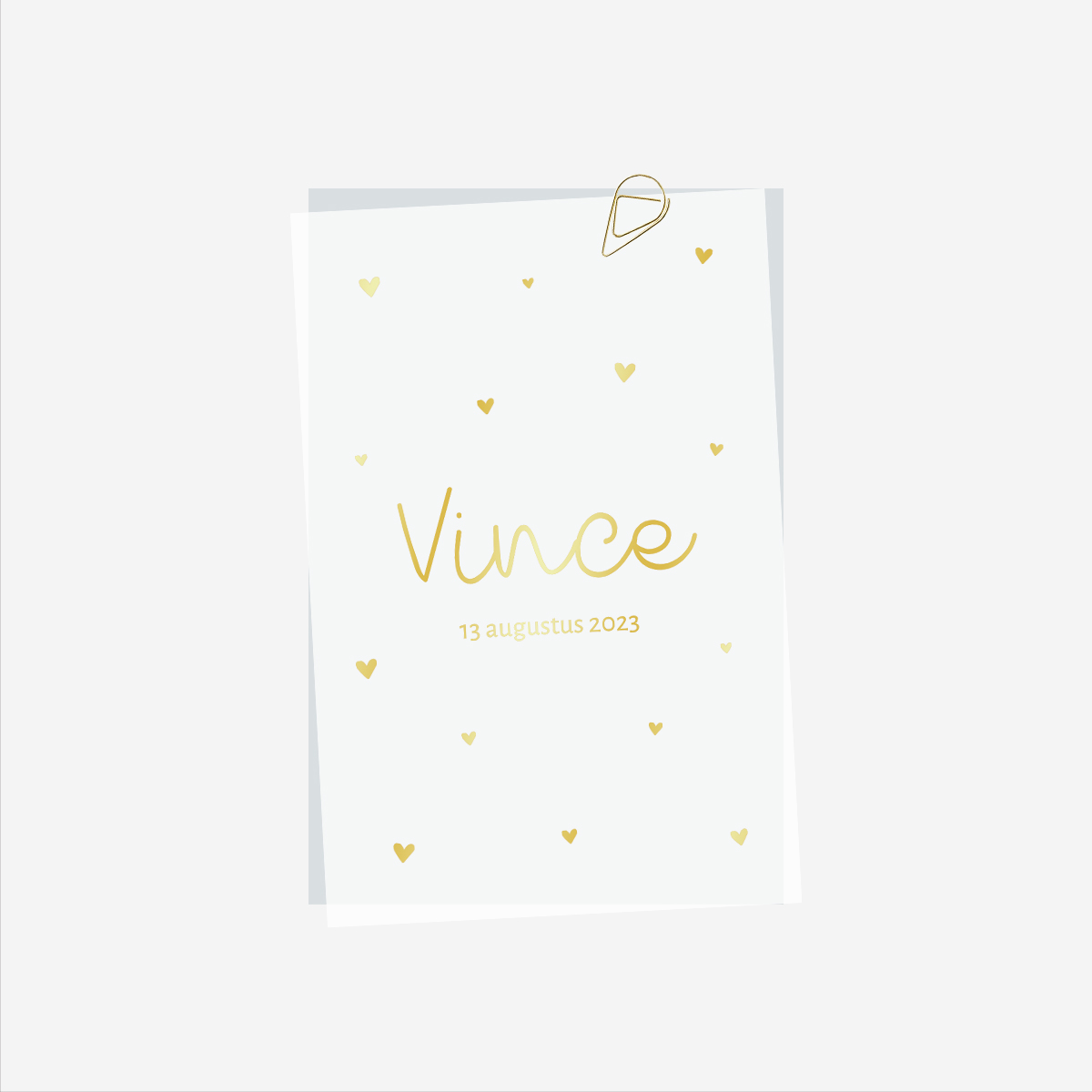 Maak jullie geboortekaartje extra speciaal met dit semi-transparante kalkpapier voorblad, afgewerkt met elegante goudfolie hartjes. Het voorblad wordt geleverd met een losse blauwe achterkaart, die samen zorgen voor een stijlvolle en unieke uitstraling.