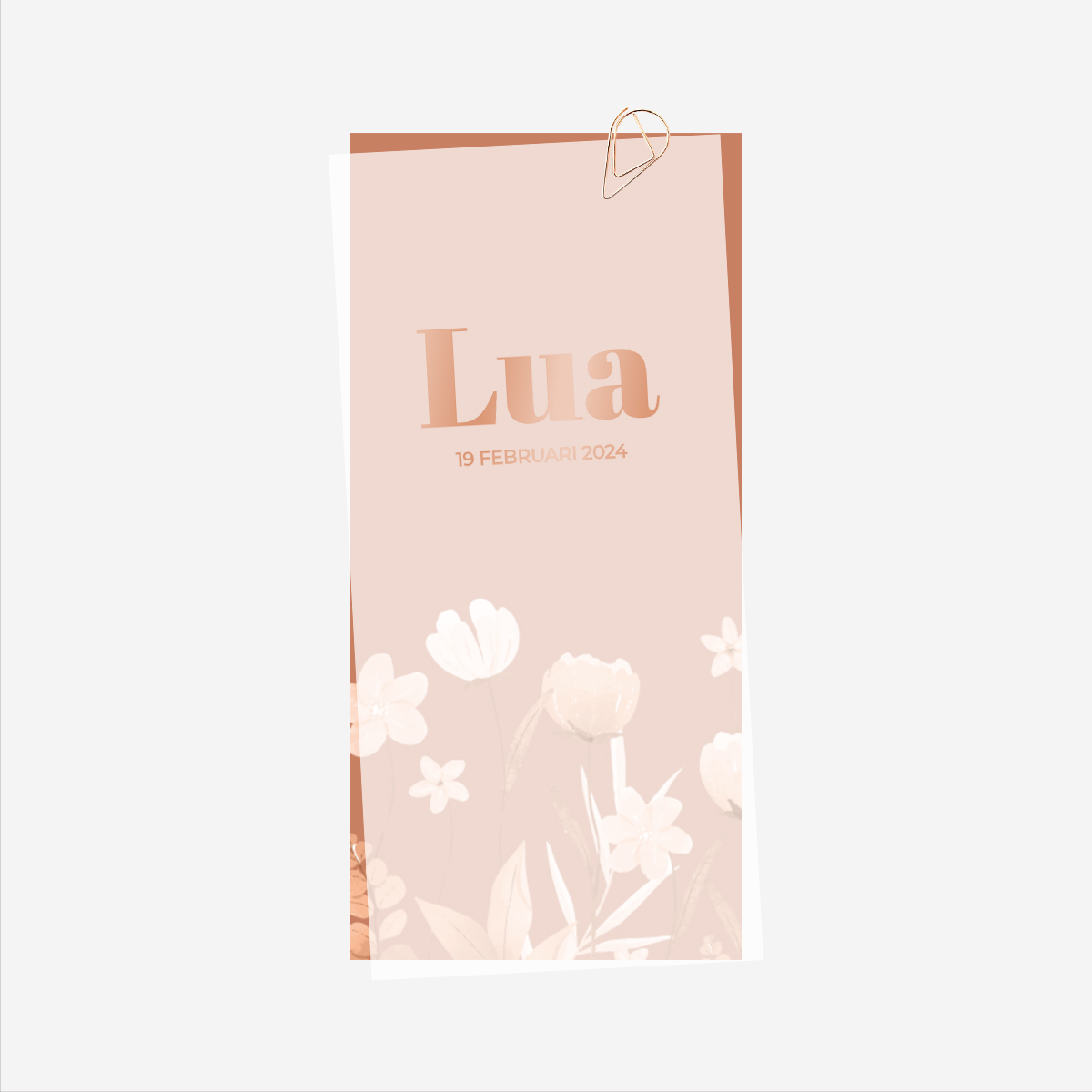 Kalkpapier voorkant (deel 1) van een terracotta geboortekaartje met kalkpapier.