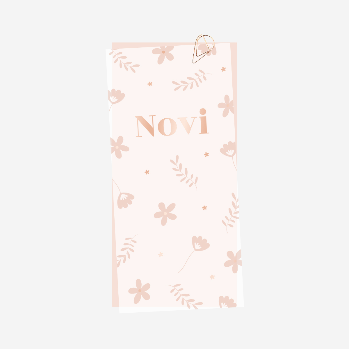 Geboortekaartje kalkpapier voorkant met Rosé goud en bloemen