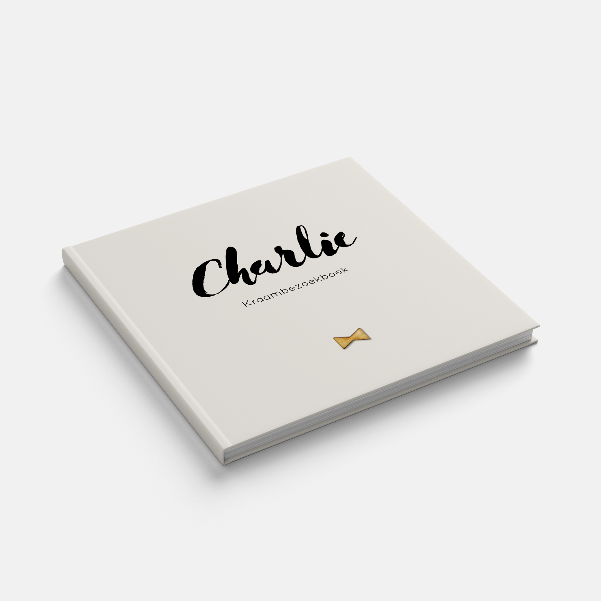 Stoer beige kraambezoekboek met zwarte letters en een houtenlook strikje. Het kraambezoekboek is helemaal bijpassend bij het geboortekaartje uit mijn collectie met echt houten strikje. Ga voor alles in één stijl en bestel dit matchende boek.