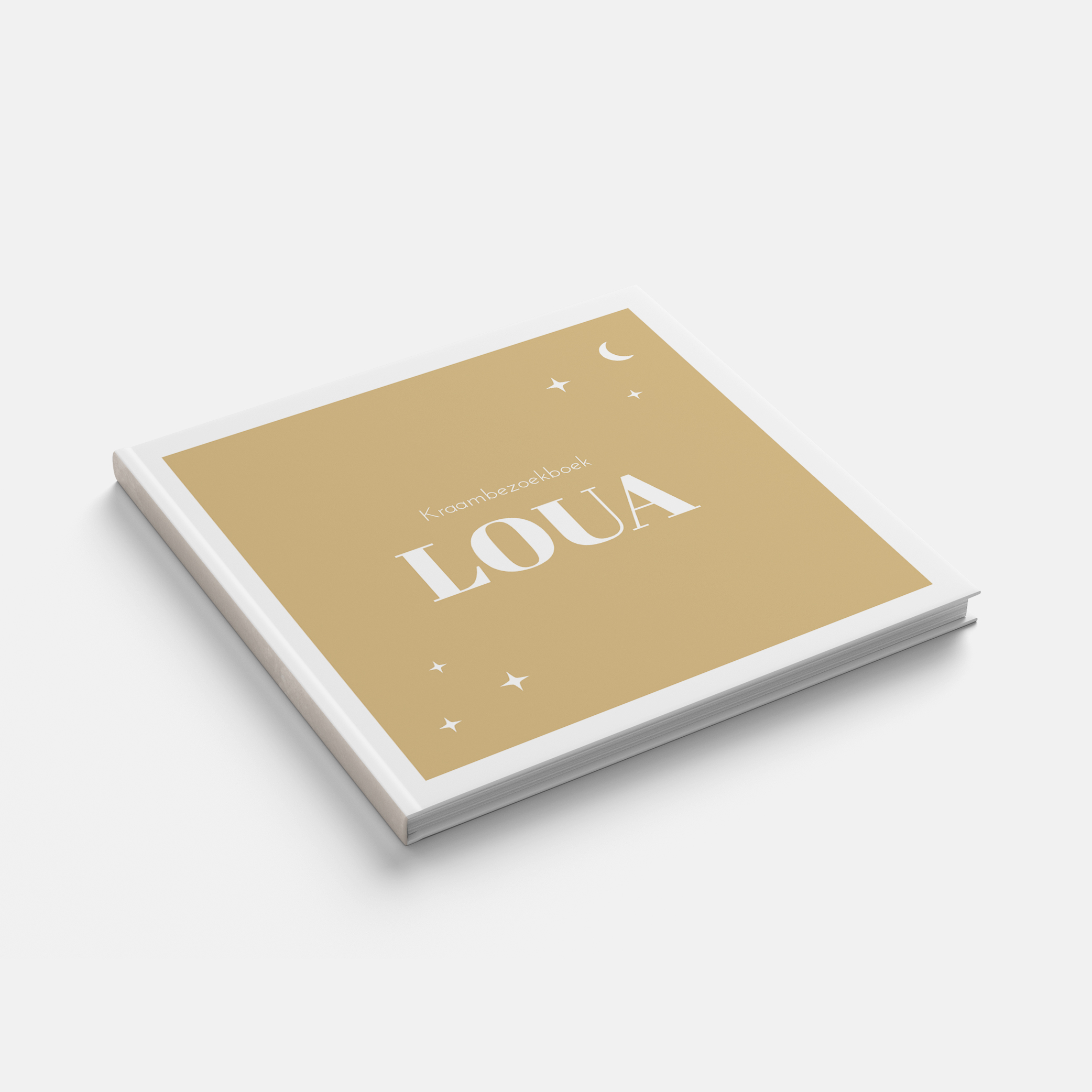 Lief kraambezoekboek in mooie mokka kleur met witte maan en sterretjes. Leuk om het kraambezoekboek te matchen dus natuurlijk hebben we in dit ontwerp ook een geboortekaartje en sluitstickers.