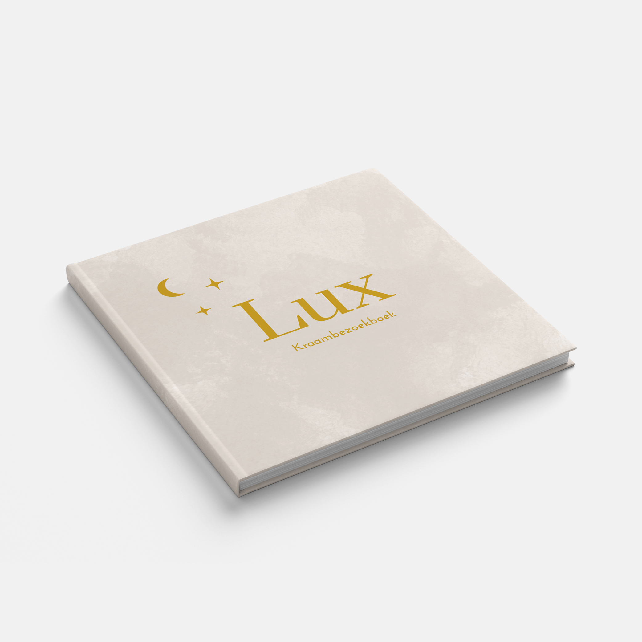 Kraambezoekboek jongen beige brush met maan en sterretjes