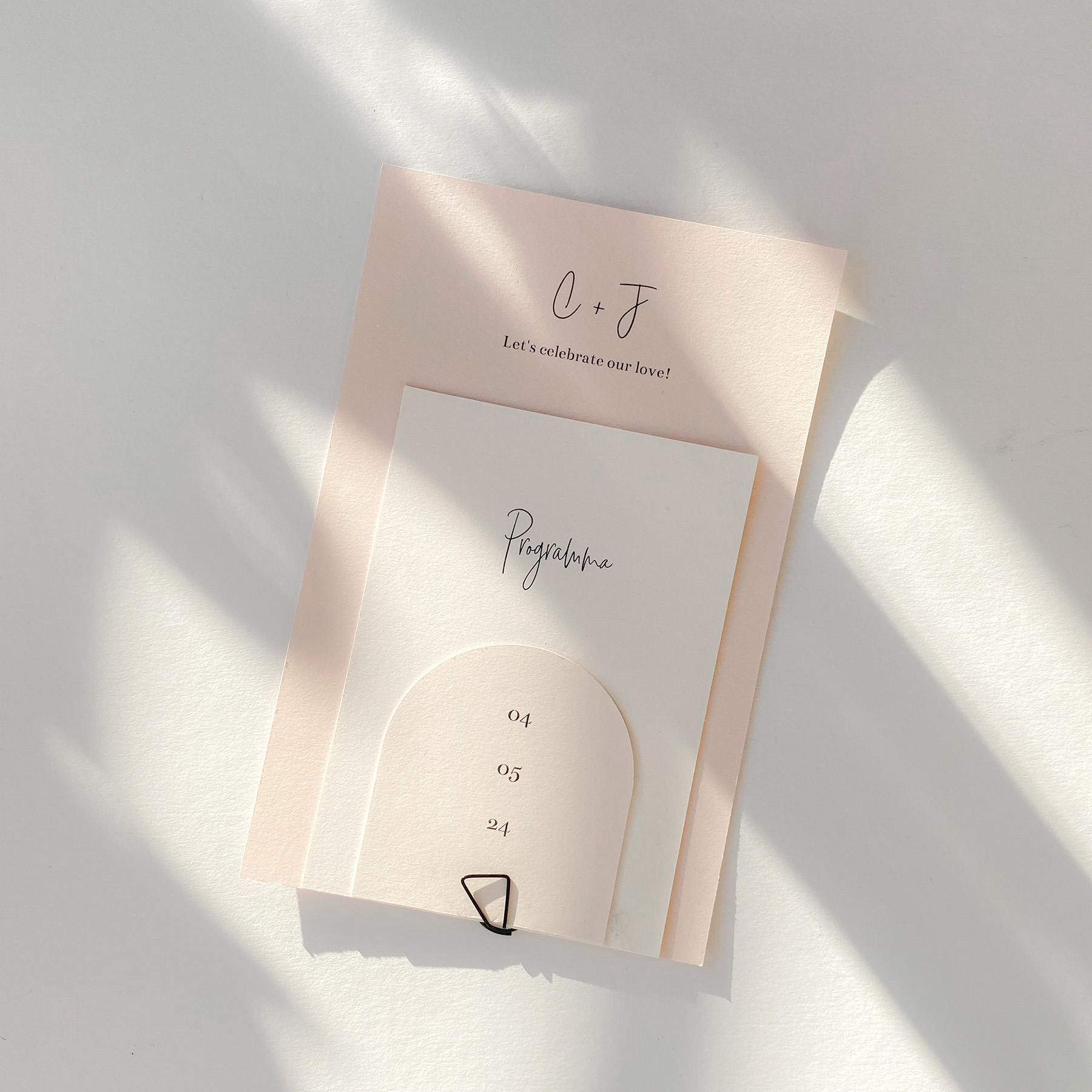 Prachtige en unieke trouwkaart in zacht roze blush kleur. De labelkaart bestaat uit 3 losse kaartjes die je aan elkaar maakt met een paperclip. De zwarte paperclip (of andere kleuren) kun je hier los bestellen.