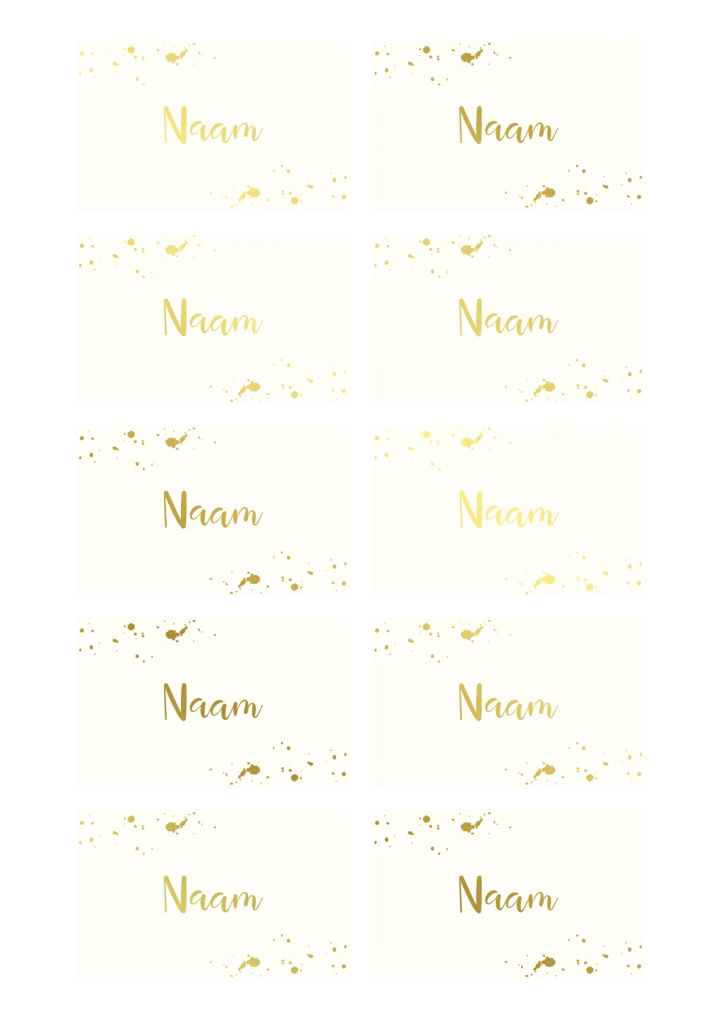Naamkaartjes goudfolie spetters sierlijk