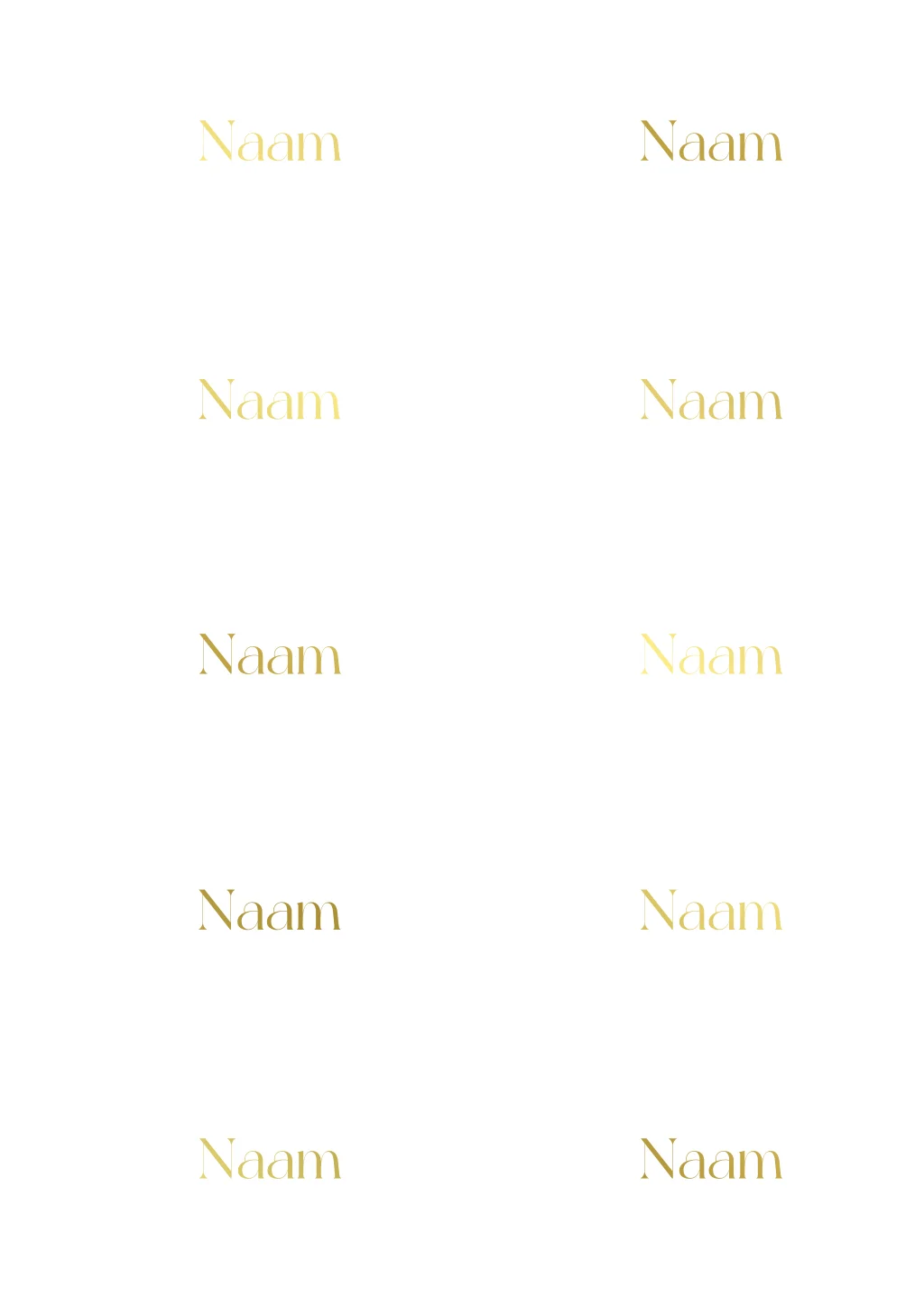 Stijlvolle gepersonaliseerde naamkaartjes met goudfolie naam. Pas ze naar wens aan in onze online editor. Bestellen per 10 stuks, formaat 5 x 9 cm