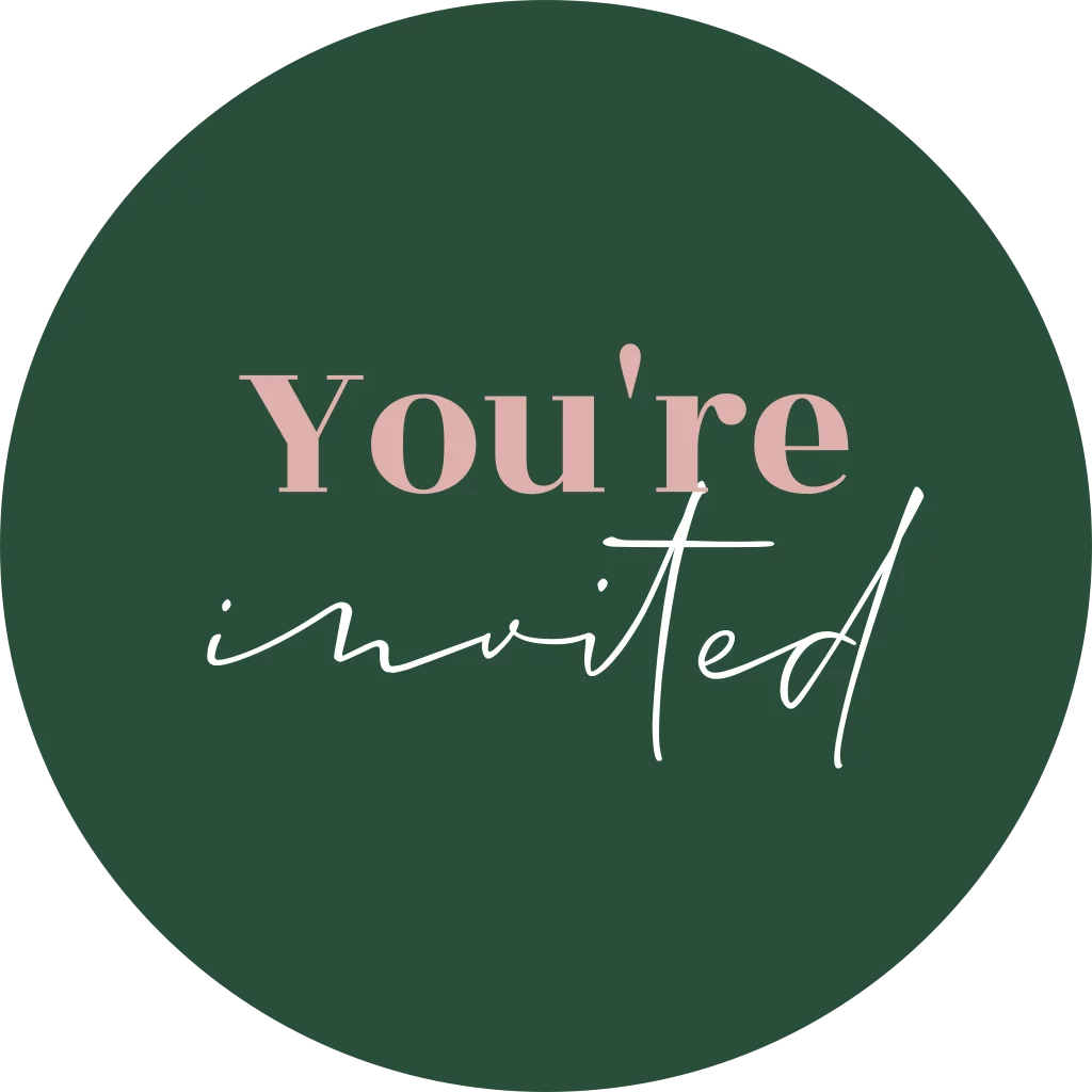 Sluitsticker met tekst you're invited in groen roze stijl. Verstuur jullie trouwkaart in stijl met deze bijpassende sluitsticker. De kleuren en het lettertype pas je gemakkelijk zelf aan in de editor.