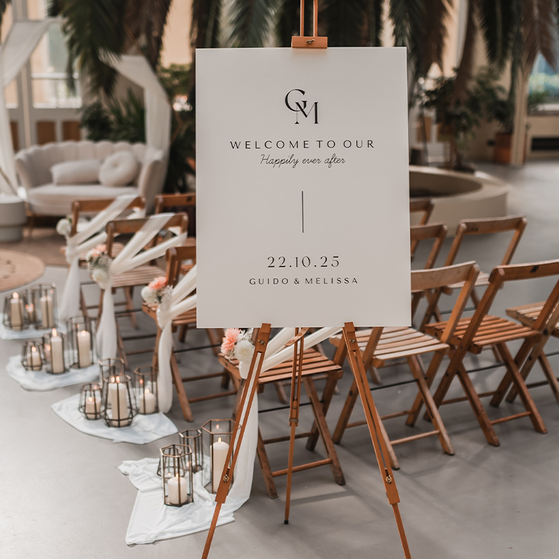 Moderne trouwkaart met gepersonaliseerd monogram trouwlogo van jullie initialen, pas het ontwerp aan in onze editor voor jullie speciale dag.