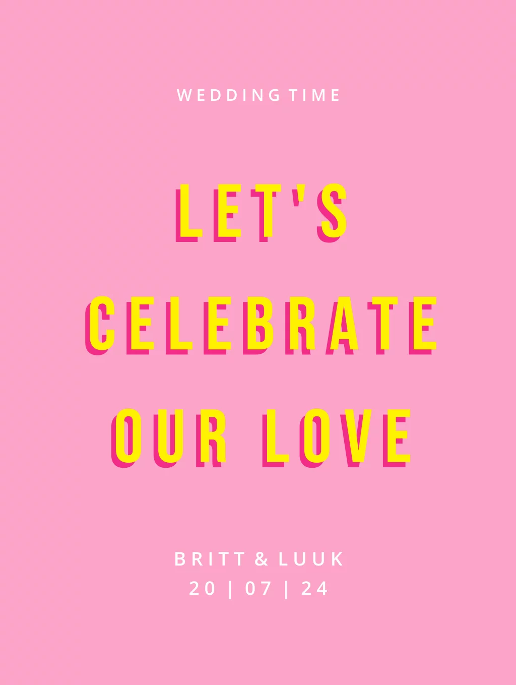 Verwelkom je gasten met dit prachtige welkomstbord! Het ontwerp in zomers neon roze en geel past perfect bij een feestelijke en moderne bruiloft. Personaliseer het bord met jullie namen en trouwdatum en creëer een warm en uitnodigend welkom voor jullie gasten.