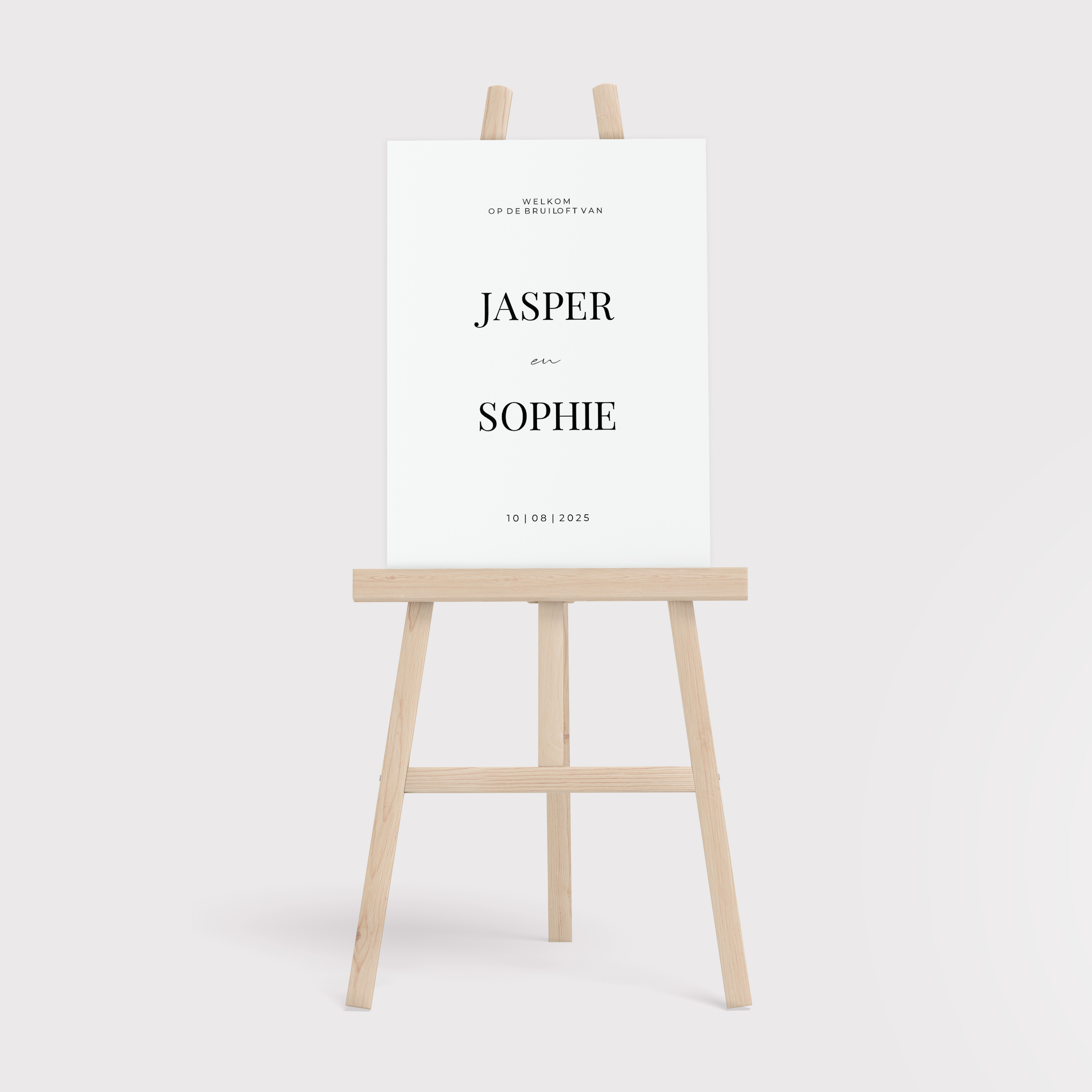 Klassiek welkomstbord in minimalistische zwart wit stijl. Onderdeel van een complete trouwhuisstijl set met save the date, trouwkaart, menukaart en naamkaartjes. Kleuren en lettertypes zijn gemakkelijk aan te passen net als het toevoegen van illustraties.