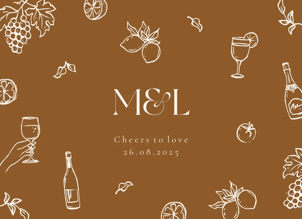Wijnetiket Vinyard Vibes getekende illustraties 5 soorten