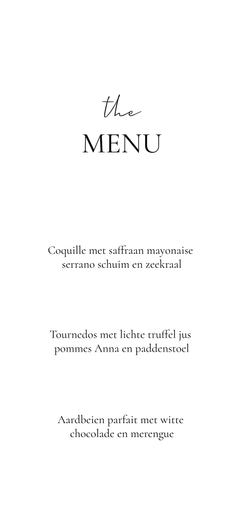 Menukaart bijpassend bij de Minimalistische trouwhuisstijl met goudfolie maan en sterretjes. Ga voor alles in 1 stijl en maak de styling van jullie diner helemaal af met deze matching menukaart.