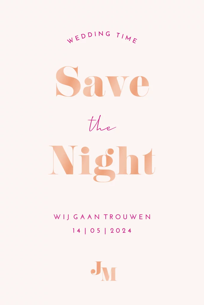 Save the date maar dan voor jullie avondgasten! Stuur deze leuke save the night in prachtige oranje roze hoogglans kleuren en laat meteen weten dat jullie gasten in de avond welkom zijn. Onderdeel van een complete summer garden trouwhuisstijl.