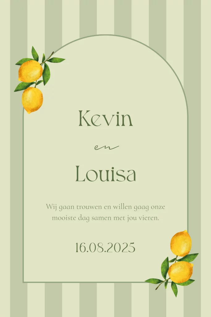 Trouwkaart strepen Italiaans citroenen olijfgroen