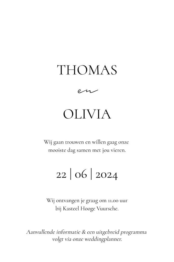 Minimalistische trouwkaart met goudfolie maan en sterretjes. Bij deze trouwkaart kaart hoort een bijpassende save the date in dezelfde stijl.